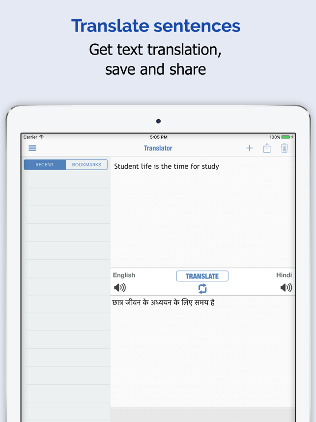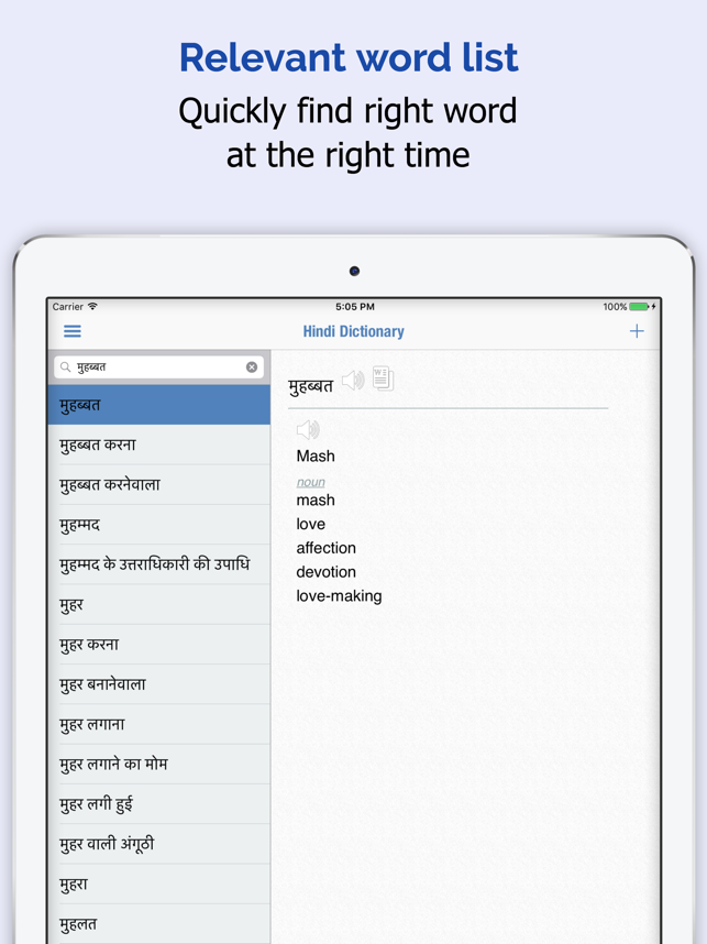 • 영어-힌디 어, 힌디 어-영어 사전 • 단어 및 구문을 힌디 어에서 영어로 번역해주는 번역기 • 35만 개 이상의 단어와 구문을 오프라인에서 사용할 수 있습니다 • 오프라인 발음 및 모든 문장 번역 • 카메라로 이미지의 텍스트를 촬영하여 사전을 찾아보세요 • 학생, 교사, 관광객 및 언어 학습자를 위한 앱입니다 • 유의어, 동의어, 반의어를 제공합니다 • 단어, 구문 또는 문장을 번역하세요 • 단어를 눌러 교차 검색을 해보세요• 북마크와 최근 기록으로 단어를 즉시 떠올릴 수 있습니다 • 오늘의 단어로 IELTS, TOEFL, SAT 단어를 배우세요• 여러 게임은 영어 및 힌디 어 어휘력을 향상시켜줍니다 • 오프라인 발음은 단어를 올바르게 배우는 데 도움이 됩니다• 플래시 카드와 오늘의 단어는 어휘력을 향상시켜줍니다 • 구문집, 오늘의 구문 및 구문 카드는 관용구를 말하는 데 도움이 됩니다 • 오늘의 명언은 지혜를 주고 동기를 부여해줍니다