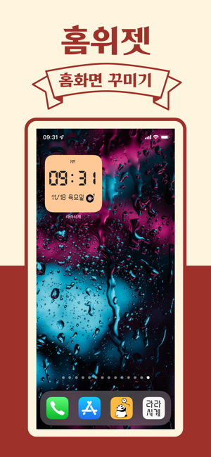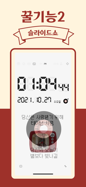 라라시계는 ‘레트로 감성’을 품은 디지털 시계로 ‘라라’ 는 순수 우리말로 “ 즐거운 삶을 살라”는 뜻을 담고 있습니다. 게임 속 화면처럼 보이는 글씨체와 곳곳에 배치한 레트로 감성의 이미지는 다른 디지털 시계와 차별화 된 라라 시계만의 매력입니다. # 라라시계, 이렇게 사용해 봐요. 독서실에서 공부할 때: 동기부여, 응원의 한 마디로 마음 다잡기사무실에서: 기분에 따라 책상 앞 사진을 바꿔주고 싶을 때 카페에서: 인테리어 소품으로 활용근무할 때: 책상 위 소품으로 다양한 활용(달력, 사진, 좋은 글, 레트로 이미지 등)# 4가지 마이 커스텀 모드 지원기본모드: 시계 + 달력할 일관리 모드: 시계 + To-do list마음 관리 모드1: 시계 + 힐링의 한 마디마음 관리 모드2: 시계 + 힐링 포토(내 폰 사진 또는 기본 감성 사진)# 일정시간 간격으로 사진 슬라이드 기능 제공(번인 현상 방지)내 폰 사진 30개까지 재생안함, 10초, 30초, 1분, 5분, 10분 옵션제공# 9가지 배경 제공# 알람 기능# 홈위젯 제공