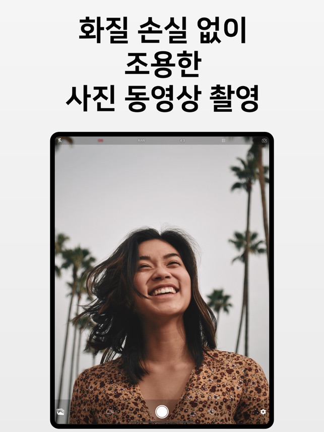 다기능 무음 카메라 앱입니다!다양한 기능을 지원하는 무음 카메라 앱을 찾고 있나요?그렇다면 미라카메라를 사용하세요.놀라운 기능들을 제공합니다.사진 촬영 기능 목록입니다.● 정방향 촬영● 타이머 촬영● RAW(DNG)와 손떨림방지(OIS)● 시간/날짜 표시 기능● EXIF비디오 촬영 기능 목록입니다.● 다양한 품질 옵션과 최대 4K 60fps 지원● 슬로우 모션과 24fps 지원● H.264와 HEVC 코덱 지원● 손떨림방지(OIS)그외의 기능 목록입니다.● 비밀앨범● 스파이 촬영 모드● iTunes 파일 공유 기능【서비스 접근 권한 안내】* 필수 접근 권한- 카메라 : 사진/비디오 촬영- 마이크 : 비디오 촬영- 사진 : 촬영된 사진/비디오 파일을 저장* 선택 접근 권한- 위치 : 사진 촬영시 사진에 위치 정보 기록* 필수 접근 권한 미동의시 서비스의 정상적인 이용이 어려울 수 있습니다.* 선택 접근 권한은 동의하지 않아도 서비스 이용이 가능합니다.* 선택 접근 권한 미동의시 서비스 일부 기능의 정상적인 이용이 어려울 수 있습니다.