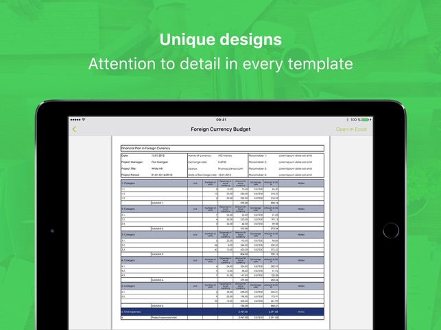 ++++++++++특별가: 4.99달러!!! -$ 9.99에서 50% 할인 가격이 인상되기 전에 받으세요!! ++++++++++Excel 템플릿 Pro(는) 여러분이 좋아하시는 iPhone, iPad 및 iPod touch용 모바일 Office/Excel 어플리케이션을 위한 115개가 넘는 강력하고 효율적인 스프레드시트 템플릿으로 스프레드시트의 수준을 한 단계 끌어올립니다. 다양한 템플릿이 있으며 디자인 및 기능을 강조하는 Excel 템플릿 Pro(는) 여러분의 생산성을 크게 향상시킵니다. 수많은 스프레트시트115개의 세련된 스프레드시트를 편집하실 수 있습니다. 저희 템플릿은 정확한 회계 시트, 제안서에서부터 캐주얼한 메뉴 및 피트니스 플래너, 편리한 달력 및 스케줄에 이르기까지 다양합니다. 자동 문서많은 스프레드시트는 스마트하고 편리한 수식 및 조건부 서식 설정으로 이미 채워져 있기 때문에 여러분은 시간을 절약하고 거의 모든 것을 자동으로 계산하실 수 있습니다! 사용 및 맞춤화가 쉽습니다모든 템플릿을 바로 사용하실 수 있지만, 원하는 대로 맞춤화하는 것도 매우 쉽습니다. 스타일, 글꼴, 색깔, 테두리, 수식 등 거의 모든 것을 변경하실 수 있습니다. 새로운 템플릿 추후 제공저희는 새로운 템플릿과 스프레드시트에 대한 피드백과 아이디어를 환영합니다. 새로운 템플릿을 제안하시거나 저희 웹사이트에 있는 기존 아이디어에 투표하시면 앞으로의 업데이트에 무료로 추가해드리겠습니다. 저희에게 연락하세요 Twitter(https://twitter.com/madeforuse)에서 저희를 팔로우하여 최신 업데이트, 콘테스트, 기타 정보를 받으세요. 주의: 이 템플릿들은 모바일 Excel 어플리케이션 전용으로 제작 및 최적화되었습니다. Numbers을(를) 사용하고 계신다면, 저희 앱 Excel 템플릿 Numbers(를) 사용해보세요.