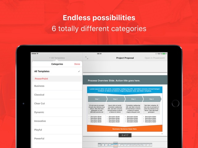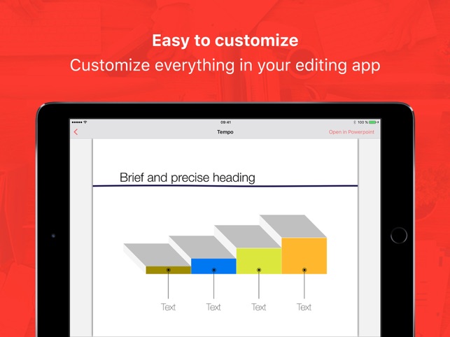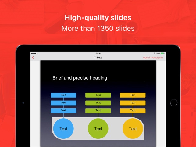++++++++++++++++++특별가: 4.99달러!!! -$ 9.99에서 50% 할인 가격이 인상되기 전에 받으세요!! ++++++++++++++++++PowerPoint용 템플릿 Pro(는) iPad 및 iPhone용의 PowerPoint 어플리케이션을 위한 최고의 부가 앱입니다. 200개가 넘는 슬라이드를 포함하여 세밀하게 디자인된 10개가 넘는 PowerPoint 템플릿이 있으면 다음 프레젠테이션 준비는 문제없습니다. 모든 템플릿을 빠르고 쉽게 PowerPoint 앱으로 내보내고 몇 초 만에 프레젠테이션 작업을 시작하세요. 슬라이드 풀 App Store에서 전문적이고 세련된 PowerPoint 슬라이드가 가장 많이 포함된 컬렉션을 받으세요! 모든 템플릿에는 표, 그림, 차트, 도표, 인용구 등을 위한 맞춤화 가능한 슬라이드가 포함되어 있습니다. 필수적이며 간단합니다PowerPoint용 템플릿 Pro(를) 받고 나면 생산성이 크게 향상될 것입니다. 멋진 더미 프레젠테이션 및 그래픽을 받아서 좋아하시는 오피스 어플리케이션에서 세부사항만 조정하세요. 비즈니스 클래스 모든 프레젠테이션 템플릿 및 PowerPoint 마스터는 비즈니스 용도로 디자인되었습니다. 저희 프레젠테이션에는 가장 매력적인 도표와 세련된 차트가 있습니다. 미리보기저희의 혁신적이고 Retina Display에 최적화된 보기 기능으로 모든 템플릿을 미리 상세히 볼 수 있습니다. 모든 슬라이드와 스타일을 미리 보고, 작업하고 싶은 적합한 프레젠테이션을 찾으세요. 저희에게 연락하세요 Twitter(http://twitter.com/madeforuse)에서 저희를 팔로우하여 최신 업데이트, 콘테스트, 기타 정보를 받으세요.