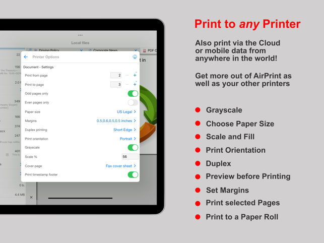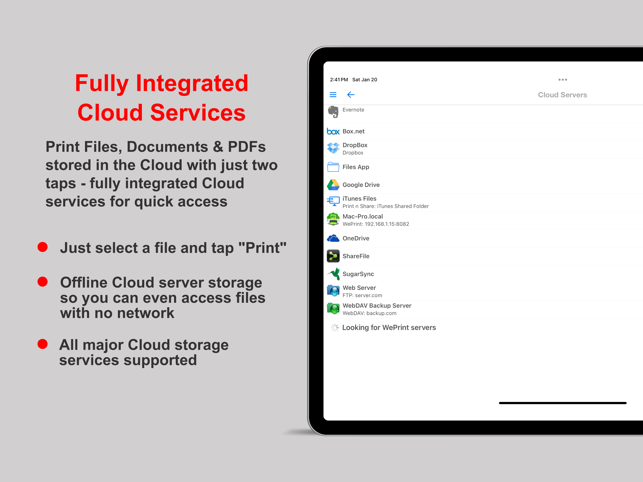 Print directly to the widest range of network or WiFi printers, without a computer or AirPrint! Alternatively print via your Mac/PC to ALL printers including USB & Bluetooth printers.Print... documents √ cloud files √ web pages √ emails √ attachments √ photos √ contacts √ clipboard items √ and much more - to ANY PRINTER!A single universal app for both iPhone and iPadDrag and drop files from other apps on the iPad for printing, exporting and importing as well as PDF conversion - Drag Web addresses from Safari for viewing and printingFeatured in the Apple "Office" Global TV ad. A single App for all devices•• The Press Love it! ••Appadvice.com "What's really cool is the app's ability to print over 3G"Incredible iPhone Apps for Dummies "Print n Share is the only way to go if you need to be able to print documents from your iPhone"AppShouter "The all-in-one office app!"Epson "Print & Share makes printing available to all"•• P