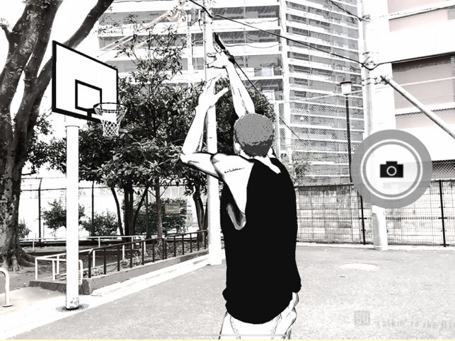 ‘Talkin'totheRim'은강백호가열심히슈팅연습하는모습을볼수있는앱입니다. [AR MODE]공원, 운동장, 체육관 등 넓은 장소에서, 주위 사람이나 차량 등에 충분히 주의하면서 기동해 주십시오.바닥을 인식하면 7.5m 전방에 농구 골대가 나타나므로, 원하는 위치를 설정해서 시작합니다.현실 세계에서 하나미치의 슛 연습을 원하는 각도에서 볼 수 있는 모드입니다.화면 오른쪽을 누르면 사진 촬영 버튼이 나옵니다.[PARK MODE] 만화 속 공원에서 하나미치가 연습하는 모습을 원하는 각도에서 볼 수 있는 모드입니다.AR 기능이 없는 기종도 PARK MODE를 즐길 수 있습니다.[ALBUM MODE] AR 모드에서 원하는 순간을 촬영하여 저장할 수 있습니다.이미지는 5초짜리 동영상으로 저장되며, 촬영된 이미지는 친구들과 공유할 수도 있는 모드입니다.각 모드에서는 화면 왼쪽 위를 누르면 나타나는 Exit 버튼으로 돌아갈 수 있습니다.[SLAM DUNK란?] 고교 농구를 소재로 한 작가 이노우에 다케히코의 소년 만화 작품.주간 「소년 점프」에서 1990년부터 1996 년까지 연재되어 해외 23 개국과 지역에서도 출판됐다.