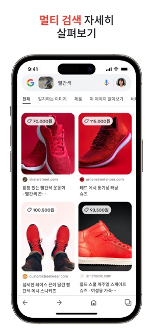 Google 앱을 사용하면 나에게 중요한 주제에 관한 최신 정보를 놓치지 않고 확인할 수 있습니다. 디스커버를 활용하여 질문에 대한 답을 빠르게 확인하고, 관심분야를 살펴보고, 최신 소식을 받아 보세요. Google 앱은 사용할수록 더 개선됩니다.주요 기능:• 카메라를 사용하여 화려한 나비, 뾰족한 식물 등 주변 사물에 관해 물어보세요.• 도로 표지판, 메뉴, 카메라가 가리키는 기타 단어 등을 100개 이상의 언어로 번역하세요.• 마음에 드는 것을 발견했나요? 카메라로 어디서 살 수 있는지 찾아보세요.• 단어를 추가하여 카메라 검색을 상세하게 조정하세요. 이 신발이 마음에 들지만 '파란색'으로 사고 싶을 때, 자전거의 고장 부위를 '수리'하는 방법을 배우고 싶을 때 유용합니다.• 가사를 잊어버렸더라도 노래를 불러 검색하세요. Google 앱에 대고 흥얼거리면 무슨 노래인지 찾을 수 있습니다.• 카메라를 숙제 도우미로 활용하세요. 단계별 가이드와 동영상을 통해 수학, 화학, 생물학, 물리학 문제를 푸는 방법을 배울 수 있습니다.디스커버에서 맞춤형 소식 받아 보기:• 관심 있는 주제에 관한 최신 정보를 확인하세요.• 일기예보와 주요 뉴스를 보며 아침 일과를 시작하세요.• 스포츠, 영화, 이벤트에 관한 실시간 소식을 확인하세요.• 좋아하는 아티스트의 신규 앨범 출시 소식을 바로 확인하세요.• 관심분야 및 취미와 관련된 스토리를 확인하세요.• 검색 결과에서 흥미로운 주제를 바로 팔로우하세요.보안을 유지하며 안전하게 검색하기:• Google 앱에서의 모든 검색은 기기와 Google 간의 연결 암호화를 통해 보호됩니다.• 개인 정보 보호 설정을 찾아서 사용하기가 쉽습니다. 프로필 사진을 탭하여 메뉴에 액세스하고 클릭 한 번으로 계정의 최근 검색 기록을 삭제할 수 있습니다.• 안전한 양질의 검색 결과를 확인할 수 있도록 검색에서 웹 스팸을 사전에 필터링합니다.Google을 사용하는 다양한 방법:• Google 검색 위젯 - 새 Google 위젯