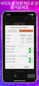 동영상을 위한 즉석 오디오 후반 작업 동영상의 사운드를 즉시 개선합니다 비디오를 최고로 만드십시오 당신은 첫인상에서 한 번만 기회를 얻습니다 훌륭하게 만드십시오 VideoMaster에는 비디오 볼륨 부스터 6밴드 오디오 이퀄라이저eq 및 많은 오디오 사전 설정이 있어 비디오 사운드를 크게 향상시킵니다