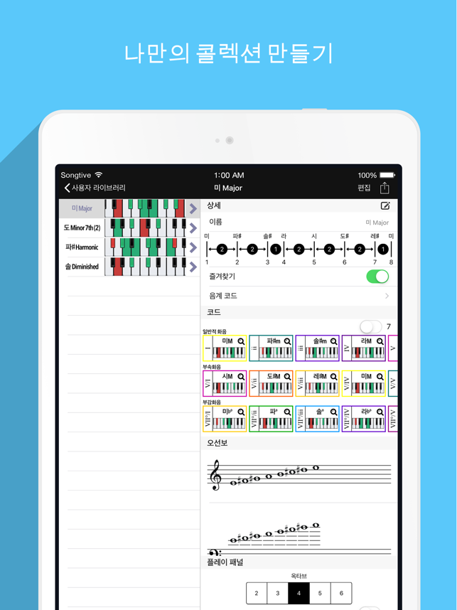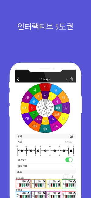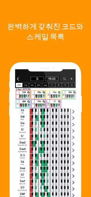 피아노 친구(Piano Companion)는 사용자 라이브러리와 유연한 코드 진행 빌더가 있는 리버스 모드를 갖춘 유연한 피아노 코드 및 음계 사전입니다. 코드나 음계의 이름이 생각나지 않을 때, 이 앱을 사용하면 키를 사용하여 찾을 수 있습니다. 예를 들어 도, 솔를 누르면 검색 결과 첫번째 코드로 도 메이저가 나옵니다. 코드를 찾을 수 없으면, 커스텀 코드를 만들어 코드 차트나 당신의 사용자 라이브러리에서 사용할 수 있습니다.피아노 친구(Piano Companion)앱은 코드와 음계의 음표, 도(degrees), 메이저와 마이너 스케일의 양손 운지를 보여줍니다 - 그리고 당신만의 커스텀 운지 또한 만들 수 있습니다. 추가로, 스케일 혹은 코드를 루프 혹은 아르페지오로 들으실 수 있습니다. 선택된 스케일과 함께 사용할 수 있는 코드 리스트 혹은 선택된 코드와 함께 사용할 수 있는 스케일 리스트도 볼 수 있습니다.이 앱은 상대적 혹은 일반 코드를 사용하는 저희의 코드 진행 빌더를 사용하여 다른 코드 진행을 시도해 볼 수 있도록 도와줍니다.핵심 특징:- 다음과 같은 1500+ 피아노 코드, 최대 6번째 자리바꿈: 메이저, 마이너, 디미니쉬, 오그멘트, 세븐스, 등.- 다음과 같은 10,000+ 스케일: 메이저, 마이너, 크로메틱, 펜타토닉, 블루스, 등.- 스케일 패턴(코드 씨퀀서)이 있는 코드 진행 빌더- 상호적인 오도권(Circle of Fifths)- 당신만의 커스텀 코드 입력 가능, 그리고 당신만의 코드 차트와 라이브러리 구성 가능- 리버스 모드를 위한 외부 미디 키보드 지원- 피아노 친구(Piano Companion)와 당신이 가장 좋아하는 디지털 오디오 워크스테이션(DAW)을 연결할 수 있는 미디 출력(iOS) 단자- 오도권(Circle of Fifths)의 사용 가능한 코드 리스트- 인기있는 키 기보: 영국, 이탈리아, 독일, 일본, 러시아, 등.- 높은음자리 와 낮은음자리 오선에 코드와 스케일 표시- 함께 사용할 수 있는 스케일의 코드 표시- 비