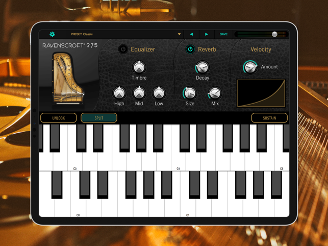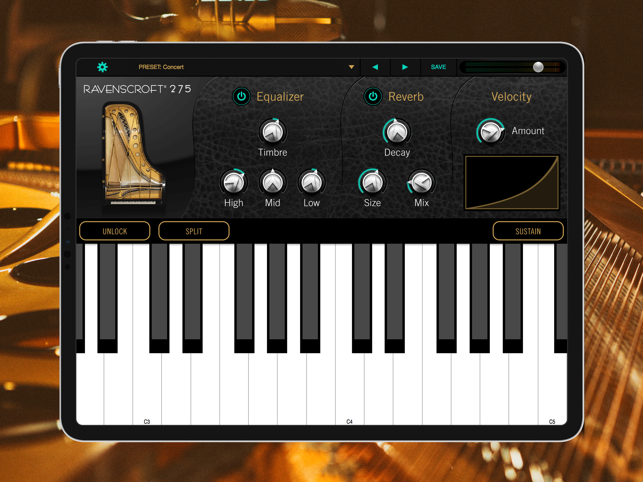 Experience the splendor of a Ravenscroft Grand with the most realistic sounding piano ever created for iOS. Launch the app and access the gorgeous tone of this one-of-a-kind concert grand from your iPhone or iPad.The origins of this virtual instrument lie in the masterfully crafted Ravenscroft 275 Titanium Grand Piano - made of 1,000 year old sitka spruce wood with solid titanium string termination points and precise, responsive CAD optimized action. The same quest for the highest fidelity sounds has spurred the deep sampling and meticulous capturing of this piano for the app. The final result delivers crystal clear hammer attacks, staccato release trails, and much more. Every detail has been painstakingly crafted to bring you the most authentic piano experience ever on iOS.SOUND- High-resolution audio recording via premium microphones and pristine converters- 100% sample-based sounds with hybrid modeling- Real sympathetic resonance- Accurate sustain pedal modeling including re-pedalin