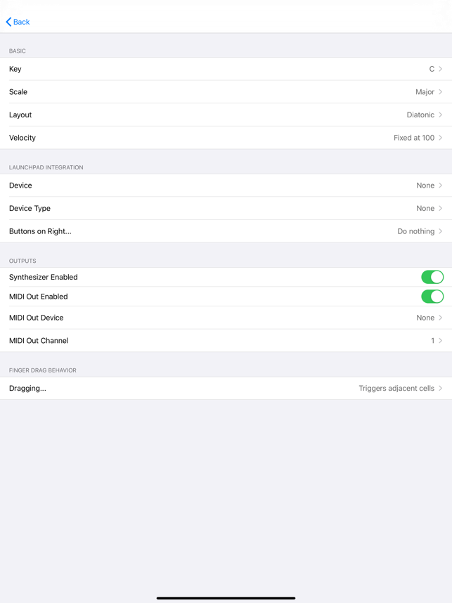 GridInstrument lets you play your iOS device like a musical instrument. Instead of a piano keyboard, notes are arranged on a grid. It also lets you hook up your Launchpad device (using the Apple Camera Connection Kit) and play that as well!Features:- Launchpad integration (connect your Launchpad Mini in low-power mode without a hub or any other Launchpad with a powered hub)- Change octaves- Change keys- Change from over 20 musical modes ("Major, Minor, Dorian, Mixolydian, etc.")- Choose between three grid layouts ("Diatonic", "Chromatic/4ths String Layout", "Drum rack"), as well as row note offset/overlap setting- Core MIDI out so that you use GridInstrument to control your other instruments- Audiobus 3 MIDI support- MIDI note input so that you can see notes triggered by other devices on your gridWant to see some other feature implemented? Contact us at the Decidedly website.