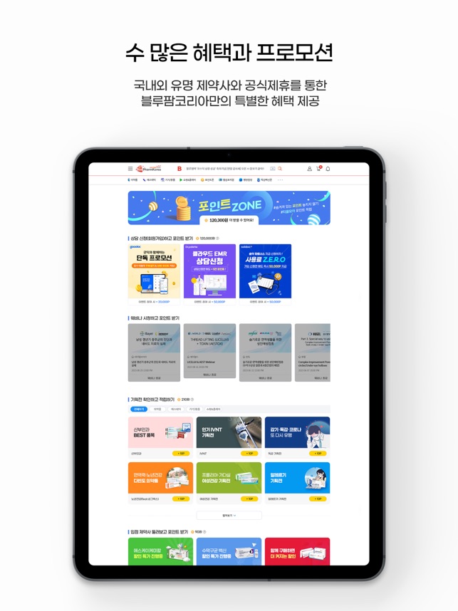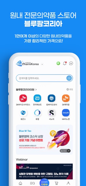 병원과 의사가 합리적인 가격으로 다양한 전문의약품과 의약외품을 편리하게 준비할 수 있도록 블루팜코리아의 새로운 변화는 계속됩니다.#2023 중소벤처기업부 예비유니콘 최종 선정#2023 한국인터넷진흥원 ISMS 정보보호 관리체계 인증#2022 중소기업기술혁신대전 장관 표창 수상#2021 중소기업기술혁신개발사업 기업 선정#2021 아기유니콘 200 육성사업 기업 선정▶ 블루팜코리아 앱에서만 제공합니다.(예고)- 품절의약품 재입고 실시간 알림 (PUSH 안내)- 편리하고 간편한 교환&반품 접수 기능- 냉장의약폼 배송간 온도 실시간 추적기능- 앱에서만 사용가능한 특별한 할인 쿠폰 제공※ '24년 새로워질 블루팜코리아 앱을 만나보세요.▶ 전문의약품 및 주요 상품별 카테고리 운영- 국내외 제약사별 전문브랜드관 운영- 전문의약품 : 백신, 주사제, 수액 등의 전문 의약품- 뷰티 에스테틱존 : 필러, 보톡스 등의 피부성형 의약품- 메디컬 디바이스존 : 의료기기, 진단기기, 의료용품 등- 쇼핑&플레이 : 사무용품, 생활잡화, 전자제품, 취미 등▶ 당일출고, 콜드체인 의약품 배송- 콜드체인 시스템 구축으로 냉장의약품 안전 배송- 국내 최초 실시간 의약품 배송조회 서비스 제공- 휴진일, 수령 희망일 선택, 원하는 날짜에 의약품 수령▶ 블루코리아 멤버스 혜택- 결제 금액의 최대 1.5% 적립- 제휴 카드 및 결제형태별 추가 혜택제공- 환자정보보호를 위한 PC백신프로그램 제공▶ 병원 행정원장 인공지능 케어 서비스- 소비 패턴 분석하여 최적화된 할인 혜택 정보 제공- 내 주변 진료과의 주요 의약품 유통 정보 확인- 의약품의 재구매 시기 및 유효기한 사전 만료 안내- 품절의약품 재입고 안내와 동일성분의 대체의약품 정보 및 가격비교- 신규의약품 및 의료계 최신 소식 실시간 정보 제공▶ 365일 언제나 거품없는 가격- 국내외 제약사와 공식 제휴를 통한 B2B 유통▶ 쉽고 편리한 의약품 통합 검색- 의약품명, 성분검색, 보험코드를 통한 의약품 검색- 동일성분의 대체의약품