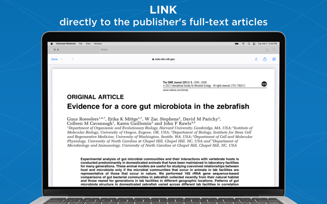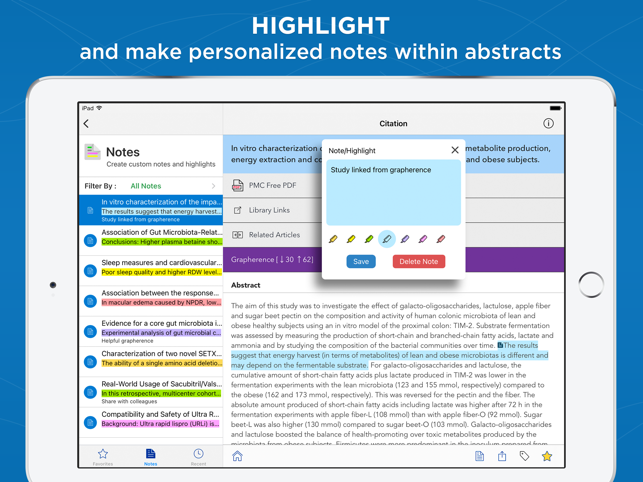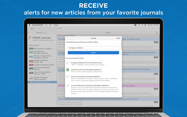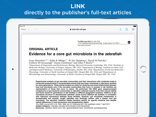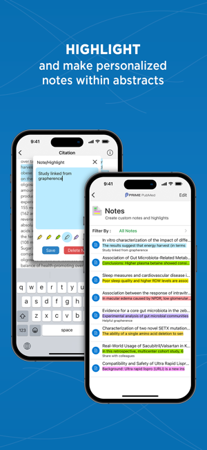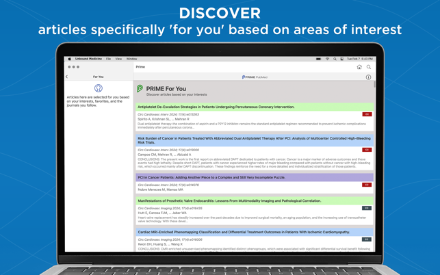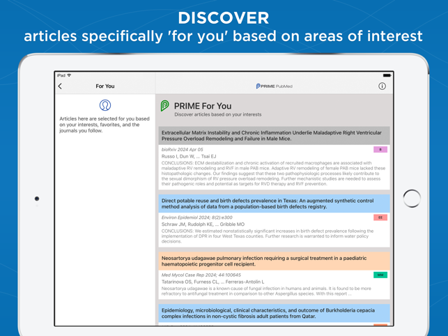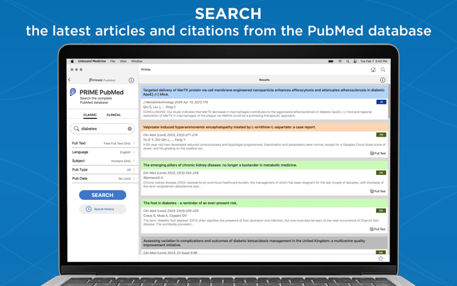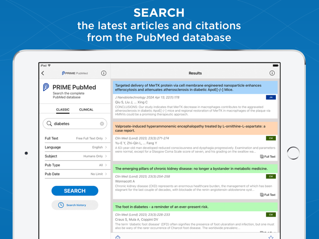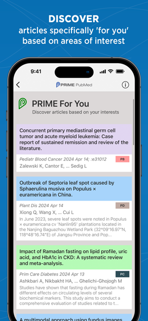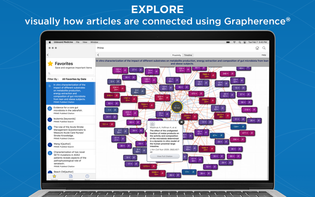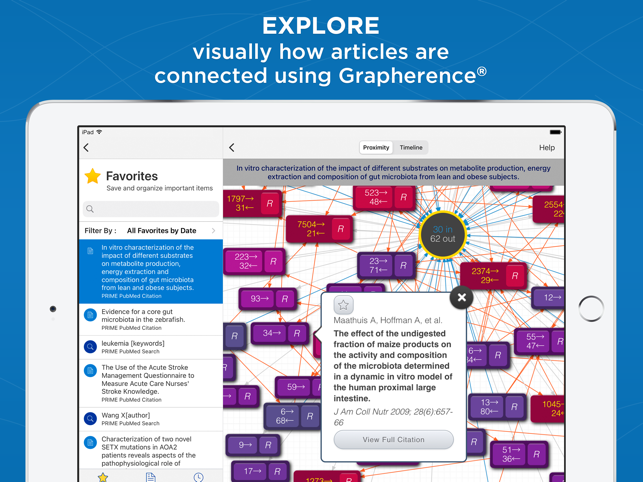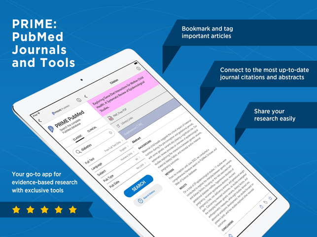 The free Prime app connects you to the most up-to-date journal citations and abstracts from the complete PubMed database. In addition to the ability to perform powerful searches and link to the publisher’s full text articles, Prime also provides a number of exclusive tools not available anywhere else creating a one-of-a-kind user experience.PRIME FEATURES- Search: Perform evidence-based searches by keyword, author, or journal then link to full text articles. - Organize: Bookmark and Tag important articles and searches to quickly return to them later- Share: Share articles directly from the app via Email, Twitter, Facebook, SMS, Dropbox, and moreEXCLUSIVE TOOLS - Grapherence®: Unbound’s unique search option allows you to visually explore the influence and interrelationships among journal articles- For You: Discover new articles in a feed designed specifically for you based on how you use the app- Browse: Select specific journals you want to follow and receive alerts when new articles a