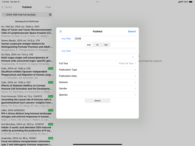 ••• Check out Bookends - PubMed On Tap's big brother ••• PubMed On Tap searches PubMed and PubMed Central to find, display, and import reference information and PDFs of the full article (requires access privileges). You can search your personal reference library, organize your references in groups (static and smart), and email references from your device to yourself or others in a form suitable for reading or importing into other reference management apps. Many features are optimized for reference retrieval and management (advanced boolean searches, search for Full Text or Free Full text, recall recent searches, etc.).