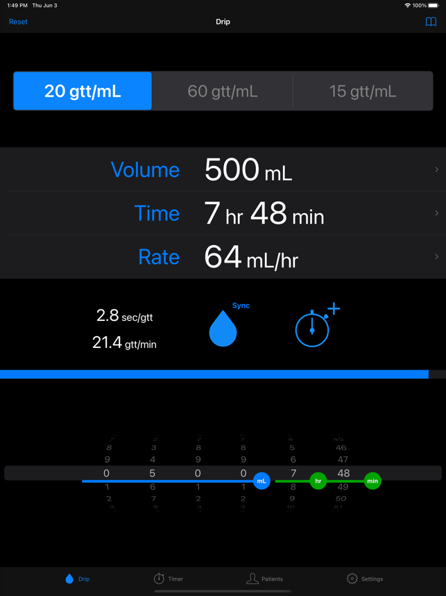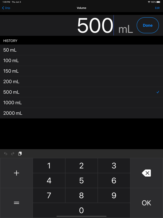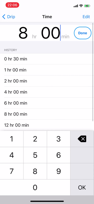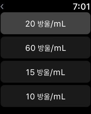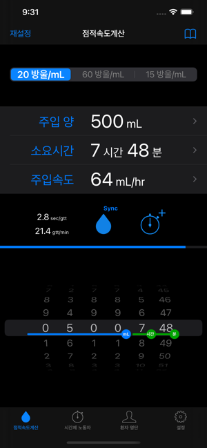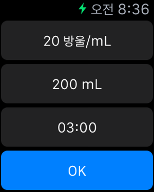 이 응용 프로그램은 필요한 시간과 주입 의 볼륨을 설정하여 물방울 의 비율을 계산합니다.파란색 진행률 표시 줄과 번쩍이는 이미지는떨어지는 간격을 표시합니다.드립 비율 계산- 초기 화면 의 20 방울/mL 의 60 방울/mL 의 주입 세트 가있다.- 다른 주입 세트를 필요로하는 경우에, 당신은 어떤 설정 을 추가 할 수 있습니다. ( 1-99 방울/mL )- 그것은 "볼륨 "과 " 시간"을 설정하여 " 속도 "를 계산합니다.- 그것은 " 속도 "와 " 볼륨 "을 설정하여 " 시간"을 계산합니다.- 그것은 "시간 "과 " 속도 "를 설정하여 "볼륨 "을 계산합니다.- 번쩍이는 이미지 활용할 수있을 것입니다.시간제 노동자-목록 나머지 주입 시간을 표시합니다.환자 명부- 이름 , 방, 메모 , 등록 할 수 있습니다.- 이름 은타이머 의디스플레이로서 사용될 수있다.애플 시계 지원- 주입 세트 (20/60/15) 및 주입에 필요한 시간의 양을 설정하여 점적 율을 표시.- 낙하 속도를 원으로 표시됩니다, 라운드 시간 간격을 삭제됩니다.[ 주의 ]이 응용 프로그램은 iOS9 이상을 지원합니다.바이브 기능은 아이폰 에 적용됩니다. 아이팟과 아이 패드 에 진동 기능 이 없습니다 .[ 책임 사항 에서 면제 ]이 응용 프로그램은 의료 에 책임을지는 것이 아닙니다 . 사용자의 책임 으로 사용해주십시오.