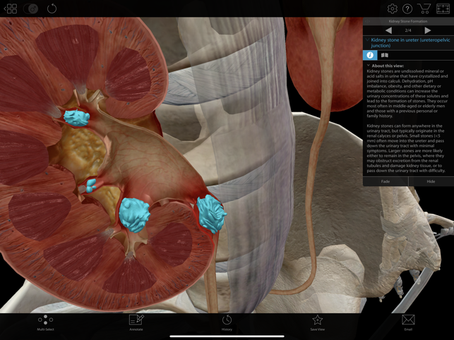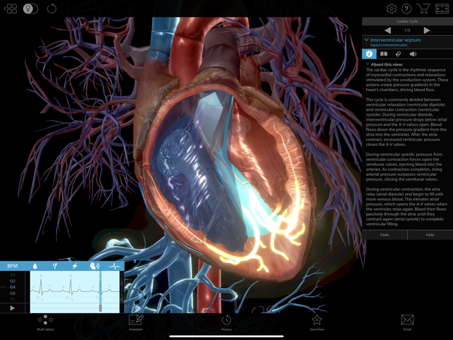 Discover what happens when physiology fails. Work through interactive lessons that explain the step-by-step breakdown of common cardiovascular, renal, respiratory, gastrointestinal, and musculoskeletal processes. Physiology & Pathology covers 48 physiology topics and 57 conditions, with 50 lessons, more than 5,800 3D models, 38 animations, 16 illustrations, and 26 quizzes.-Compare 3D models of normal anatomy to models of common diseases and conditions-Set the heart rate and visualize conduction in a dissectable, beating 3D heart, and follow along on an ECG-Watch animations that present to the physiological processes of gas exchange, pulmonary ventilation, fluid balance, peristalsis, and more-Walk through interactive lessons to understand the progression of atherosclerosis, kidney stones, lung cancer, and other common conditions-Test your knowledge of various physiological processes and pathologies with quizzes"I can’t wait to teach with this—it is the first time I have seen he