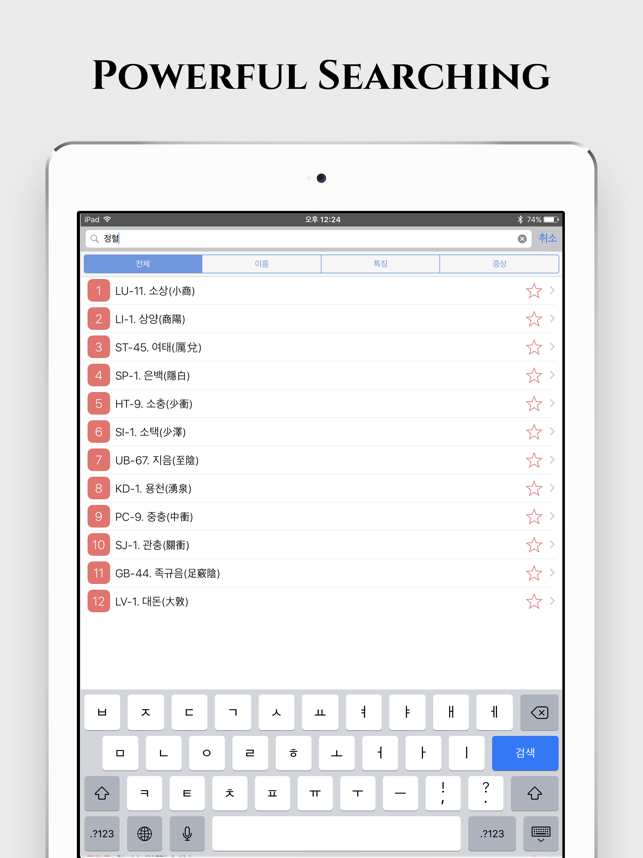 한의사와 학생을 위한 혈자리 Bible 앱!특징• 한눈에 들어오는 깔끔한 인터페이스• 강력한 검색엔진: 지원되는 언어(영어,한국어,중국어)로 이름별, 증상별, 특징별 검색 기능• 실시간 다중 언어 지원: 지원되는 언어를 재시작 없이 실시간으로 변경• 보기쉽게 제작된 피부/근육/골격 층별 이미지• 경락별/부위별/혈자리 그룹별로 분류된 혈자리들• 즐겨찾기로 체크해서 자신의 입맛대로 정렬• 줌, 확대, 그리고 쓸어넘기기.. 등의 간결하고 강력한 멀티터치 제스쳐 지원• 두침 및 이침 혈자리• 경락 유주(본경, 낙맥, 경별, 경근)• 특정 질병이나 증상에 맞는 '나의 즐겨찾기 그룹' 작성기능• 각 혈자리별 개인 노트지원문제가 있거나 도움이 필요하신가요? developer@acuproapp.com 로 연락해주세요.곧 추가될 기능• 각 혈자리 비디오 설명