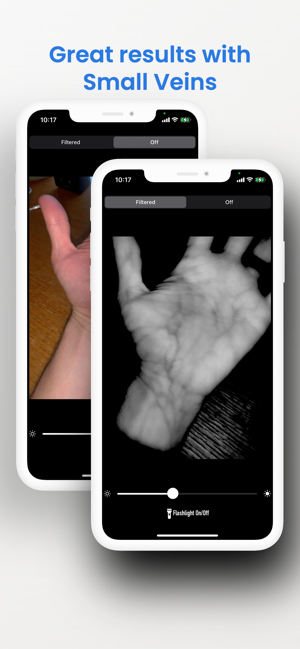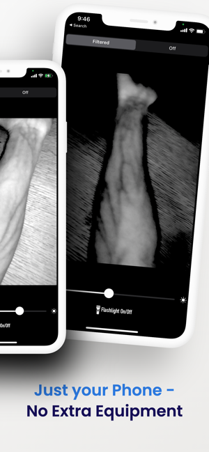 Click on "Developer Website" or "William Lewis Website" below to see VeinSeek Pro in action! VeinSeek Pro is an augmented reality 'vein finder' application for your smartphone.----------------------------------------Instructions for first-time use:1) Hold your iPhone at least 10 cm (4-5 inches) away from the skin.2) Turn the flashlight on by pressing the flashlight icon at the bottom left of the screen.3) Adjust the contrast with slider to the *lowest* setting that allows you to see veins well.4) If you still can't see veins, try a physical maneuver; lower an arm vein below the level of the heart, or use a tourniquet, for example.5) If all of the above fail, try looking at a different site. VeinSeek will not perform as well as ultrasound for deep veins.---- Follow us on twitter: @VeinSeek ----Read reviews on our website:www.veinseek.comPlease leave us a review on the App Store!For support, contact us: veinseek@gmail.com-----------------------------------