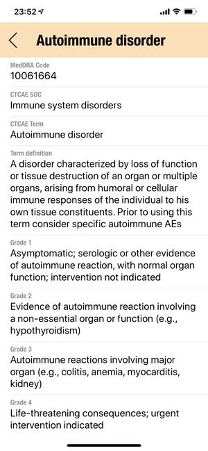 CTC-AE+ is a browsable reference to the CTC-AE list of adverse event (AE) terms commonly encountered in oncology, plus a portable Adverse Event Logger to keep track of all adverse events during a clinical study.The CTC-AE 4 and CTC-AE 5 have been developed from the earlier vocabulary known as CTC (Common Toxicity Criteria). Each AE term is defined and accompanied by a grading scale that indicates the severity of the adverse event. All AE terms are organized by the System Organ Classes (SOCs) defined by the Medical Dictionary for Regulatory Activities (MedDRA).Adverse events are common phenomena affecting patients being treated for cancer. With the availability of new agents and the multimodality interventions, it is critical to monitor systematically the AEs that are linked to oncology research.CTCAE is fundamentally intended to be an agreed upon terminology for the designation, reporting, and grading of AEs that occur in oncology research.########################CTC-AE serves severa