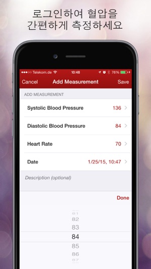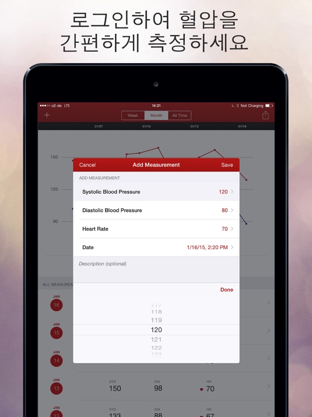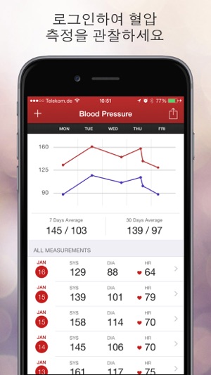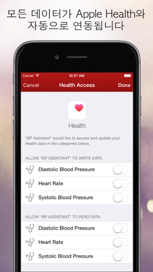 혈압 어시스턴트는 귀하의 모든 혈압 측정값을 기록, 관리하고 기억하는 데 도움이 되는 사용하기 쉬운 앱입니다. 혈압을 장단기로 모니터링하고 의사에게 현황을 설명하십시오. 주요 특징: - 직관적인 첨단 사용자 인터페이스 - 혈압 판독치, 심박수, 날짜 및 관련 메모를 저장, 불러내기 및 편집 - 정교한 차트로 혈압의 전개를 모니터링- Apple Health Integration (iPhone only)Please note: Apple Health is currently only available for iPhone. Thus, synchronization of data between iPhone and iPad via Apple Health is currently not supported.