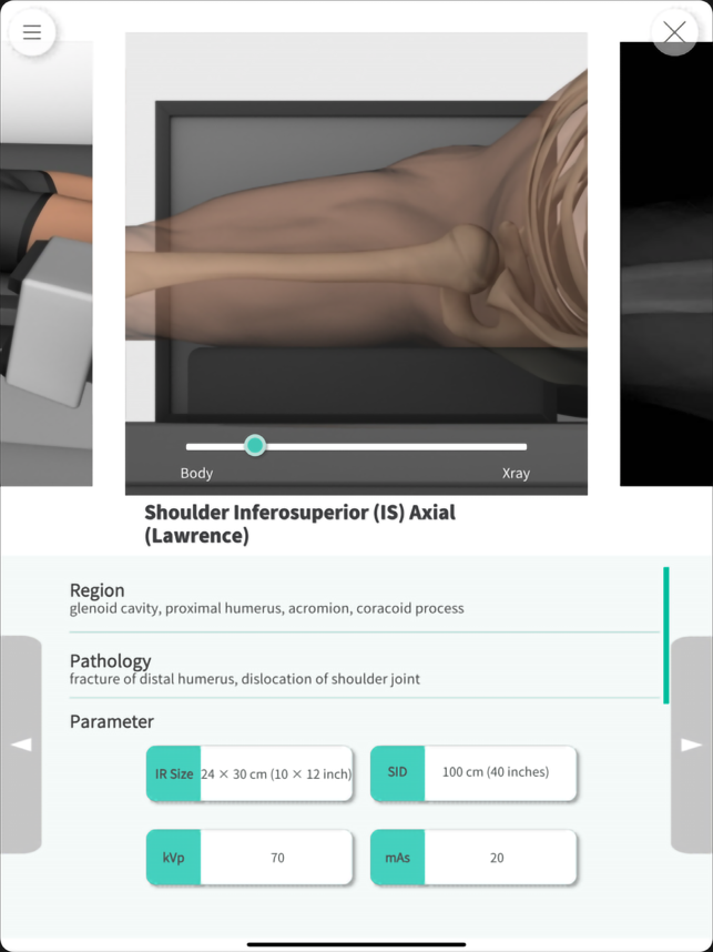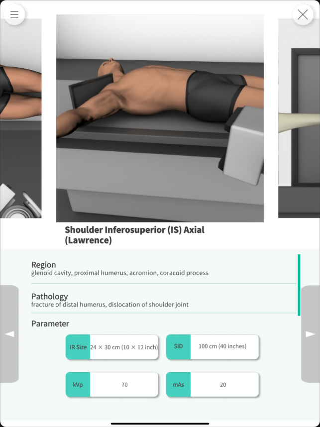 Navi Radiography: Mobile Guide for Radiography with 3D imageMobile Application Version of Meducoach Radiography (meducoach.com)Naviradiography Pro (Navi Rad Pro)- 245 Radiography Methods· 45 head and skull tests· 28 vertebral column tests· 53 thoraco-abdominal tests· 55 upper extremities tests· 64 lower extremities tests- Beam's Eye View· 3D image on the X-ray incident direction.· Perfectly matched Skin, Bones, X-ray picture· Adjusting transparency with One-Tap· Identifying the principles of X-ray picture easily and perfectly- Position & X-ray· 3D image reproducing the posture of the patient perfectly· Front view, side view, perspective view, etc· Direction of beam, angles, and various radiographic parameter· X-ray image atlas, anatomical and medical terms- Summary· Various language with the medical term· Region, pathology, IR Size, SID, the central ray· Respiration, patient position, collimation, kVp, mAs· Image evaluation and tipBest Choice to learn radiographic methods (radi