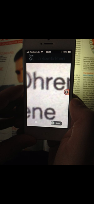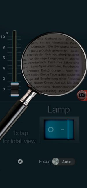 작은 인쇄물을 다시 읽는 데 어려움이 있습니까? 걱정하지 마세요! 이제 언제나 유용하고 사용이 쉬운 포켓 크기의 개인 확대경으로 읽기와 보기가 가능합니다! 최대 10배까지 확대가 가능하고 조명 기능까지 갖춘 이 툴을 사용하면 어두운 곳에서도 쉽고 편하게 볼 수 있습니다.작동 모드 참고 사항: 이 돋보기는 사용자 휴대폰에 내장된 카메라를 사용합니다. 확대하고자 하는 물체로부터 5cm 이상 떨어진 위치에서 잡고서 먼저 카메라 초점이 맞도록 합니다(이미지가 초점 안에 들어옵니다). 그런 다음 슬라이드 스위치를 천천히 이동시켜 확대합니다. 팁: 빨리 이동시키지 않도록 합니다!