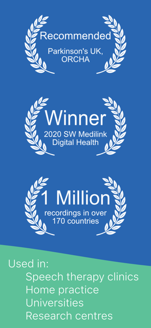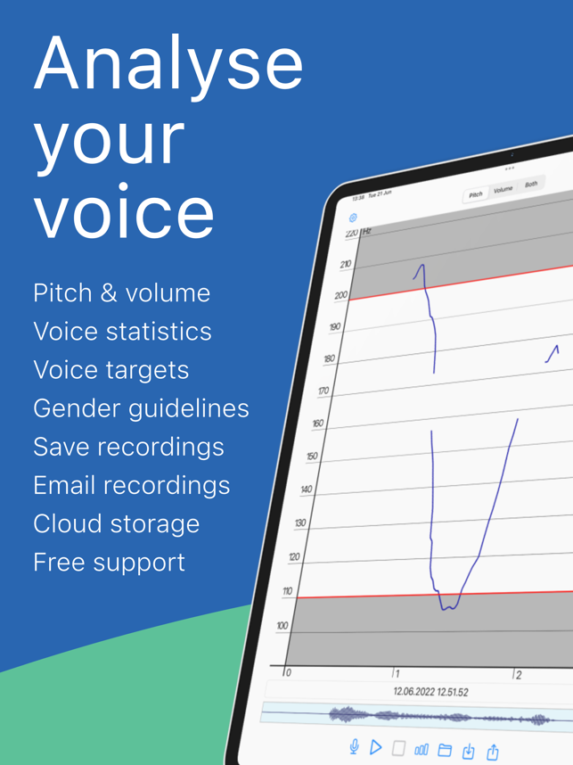 The world's favourite voice analysis app, used in speech therapy clinics, research centres, universities and homes in over 120 countries. Over 10 million recordings have been made with Voice Analyst.Winner of Digital Health Award by Medilink SW Healthcare InnovationUse Voice Analyst to...• Analyse your pitch and volume as you speak or from any audio recording.• Deliver remote speech Telehealth (Telemedicine / eHealth)• Support speech therapy (such as LSVT for Parkinson’s) in clinic and/or at home.• Check your voice against pitch and volume targets.• Email recordings to your Speech Therapist.• Transfer recordings to any cloud storage such as iCloud, Dropbox and others.Who is it for?• Speech and Language Therapists• People with neurological conditions such as Parkinson’s Disease or brain injury• People with voice difficulties such as a vocal fold palsy or muscle tension dysphonia• People who are transgender• Singers, performers, trainers• And more...Features• Record your voice and s