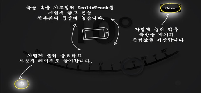 척추측만측정기는 (ScolioTrack) 안전하며 척추 상태를 진찰하는데 아주 혁신적인 방법입니다 ◆ 월스트리트 저널 2011 아시아 혁신 시상식에 초청 ◆ 연구 및 임상 적으로 입증 ◆ 척추진찰기는 보통 $150~300 입니다. ◆ 사용하기가 쉽고 간단하며, 의학상식이 나 훈련이 필요없습니다. 이 장치는 사용자가 척추에서 발생하는 비정상적인 척추 곡선의 진행 상태를 추적할수 있도록 해줍니다.아이폰의 터치와 함께 사용자가 쉽게 매달 진행을 추적할 수 있습니다. 이 사용하기 쉬운 방법은 척추 측만증으로 고통받는 모든 연령의 사람들에게 적합합니다. 정확도가 높은 이 응용프로그램은 의사, 지압사, 물리치료사 같은 전문가용으로 적합하고 사용이 간단함으로 이들의 개인용으로도 적합합니다.이 장치는 엑스레이보다 훨씬 안전하며 개인의 상황을 진찰하기 위해 의사예약 사이에 이용할수 있습니다.“ScolioTrack가 있으면 의사가 마치 척추 진찰기를 가지고 있듯이 환자는 아이폰을 이용하여 달마다 척추곡선을 진찰할수 있습니다.” 라우박사는 말합니다. ”척추 진찰기는객관적으로 척추 칙만증의 심각도를 측정하는 장치입니다. ScolioTrack도 마찬가지로 같은 작용을합니다.”프로그램의 특징• 간단하고 매혹적이고 우아한 인테페이스임.• 엑스레이보다 더 안전하고 저렴함.• 여러 사용자와 사용할수있고 나중에 참조할 수 있도록 아이폰에 편리하게 데이터를 저장하실 수 있슴.• 개인의 트렁크회전 각도, 즉 검사의 주요 측정과 척추 측만증의 치료계획을 추적하고 저장함.• 사람의 신장과 체중을 추적하고, 척추 측만증을 가지고 있는 성장하는 청소년들한테 혹은 건강의식이 있는 성인들에게 적합함.• 결과를 확인하고 척추의 변함을 아름다운 그라프로 표시함.• 카메라기능은 사용자의 허리사진으로 늑골 돌출, 허리 돌출, 몸의 가지런함 척추탈선같은뒤의 변화를 시각적으로 볼수있게 뒤에서 사진을 찍으며 전 사진기록과 쉽게 비교할수 있슴.• 사용자들에게 척추의 최신 관련정보을 알려주기 위해 뉴스 피드를 표시함