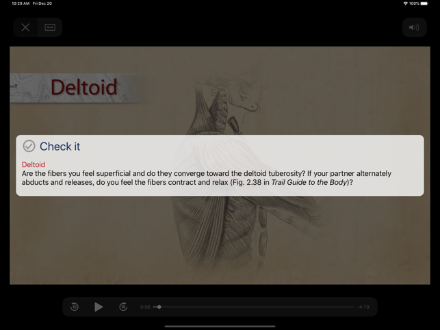 PalpationMapp is an easy-to-navigate visual guide to identifying and palpating 91 essential muscles. Acclaimed author of Trail Guide to the Body, Andrew Biel provides clear instructions that will build your confidence as you practice palpating with precision.With PalpationMapp, students and practitioners in the manual therapy professionals deepen their understanding of the musculoskeletal system and master their palpation skills.Features of this app include:• 91 essential muscles presented in a HD quality video format • 200 beautiful overlay images from the Trail Guide to the Body textbook depict underlying anatomy during palpation • Check-it box, for nearly every muscle, which helps the user confirm the location of the muscle being palpated This app teaches the user to:• Identify key bony landmarks• Identify and engage muscles• Palpate and get a sense of fiber direction • Differentiate muscles from adjacent structures• Shorten and lengthen musclesMenu-guided navigation to individual p