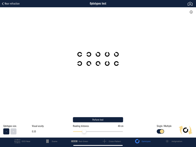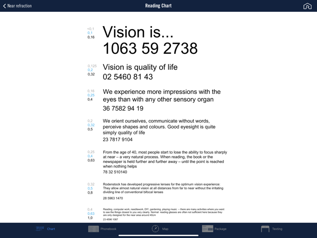 The target group for the application „EyeConsulting+“ includes eye care professionals such as optometrists, ophthalmologists and opticians who are engaged in professional determination of prescriptions.This app particularly supports the determination of near prescriptions. For measuring the refraction data a selection of several tests, near distance reading samples and information about near vision are available in this app. Additonally this app offers the opportunity to perform a far refraction.1) Educational clip "Near refraction - The easy way"2) Calculation of the individual optical near centre distance3) Tests to determine the addition (Duane´s figure)4) Addition calculator5) Tests for binocular fine adjustment (Cross-pattern test and Red-Green-test)6) Optotypes and astigmatic fan chart for an individual near correction and determination of the visual acuity7) Near distance reading samples8) Optotypes and astigmatic fan chart for an individual distance and astigmatic cor