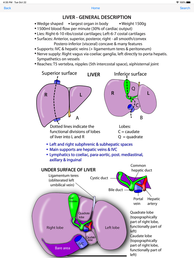 This application provides learners of human anatomy with 560 diagrams or flash cards for learning, revision or as a quick reference guide. They are ideal for medical or nursing students, biological studies students and physiotherapists or doctors looking to refresh their knowledge. The content is split into the following parts of the body: • Head and Neck - 204 diagrams • Thorax - 67 diagrams • Abdomen - 104 diagrams • Arm - 112 diagrams • Leg - 81 diagrams Each section is then split into the following: • Areas/Organs • Vessels • Nerves • Joints • Muscles • Surface Anatomy • Vertebral Levels The diagrams can all be zoomed in using the pinch gesture and can be viewed in landscape or portrait. There is also a search function allowing you to find any diagram using a keyword. The material is presented by Dr Robert Whitaker who spent his clinical career as a paediatric urological surgeon. Having retired from surgery, Dr Whitaker now teaches clinically applied topographical anatomy to first-