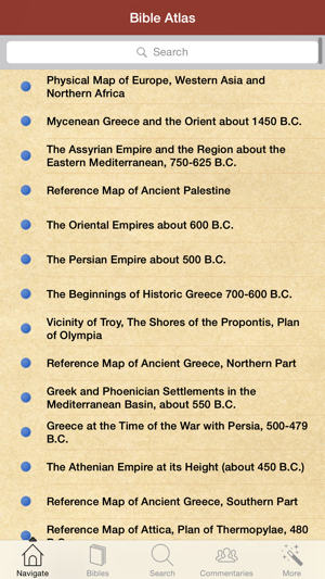 성경에 중요한 위치는 세 1000s와 행성의 광대한 영역을 다루는이 아틀라스로 덮여있다. 고전 테마지도 사용하여 Word에 깊이를 탐구하는 데 영감을 얻어보세요.추가 리소스로 전체 성경 공부를 포함합니다.부가 보너스로서 그것은 수십여 개 언어로 참고 자료로서 65 성경이 포함되어 있습니다. 개인 성경 링크된 해설 수천 연구를 백업합니다.이 강력한 성경 참조 도구는 더 나은 기독교 세계를 이해하는 데 도움이됩니다.iPhone과 iPad 지원.도구 :=====손가락 swipes 챕터를 탐색라이브지도정적지도이메일 보내기60 개 이상의 성경논평 수천사용자 정의 텍스트 크기 및 색상.