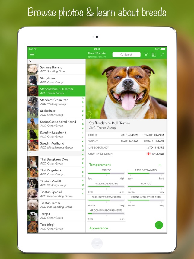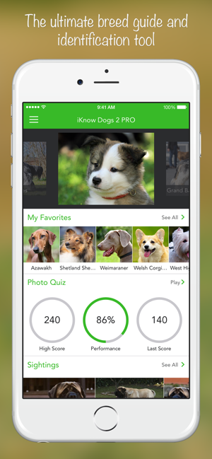 The Ultimate Dog Breed Guide in the Palm of Your Hand!Do you want to know more about dogs? Looking for a dog that best fits your family?NATURE MOBILE introduces iKnow Dogs 2 PRO, an ideal guide to the most popular dog breeds. Finally, you have a direct option to identify different breeds without a book. Identify dogs by their look, purpose, temperament, and origin. You get a comprehensive library full of facts, figures, and images. Find the perfect dog for you and your family, or find the biggest, friendliest, most energetic, or any other type of dog that you like!“Bo” Obama, “Tinkerbell” Hilton, “Butkus” Stallone, “Blondie” Hitler, or “Koni” Putin; Scooby Doo, Pablo Picasso, and many others are referenced, too.CONTENT • 350 breeds (AKC and FCI) • 3000 images • Breed info (temperament, description, celebrities, etc.) • Introduction (history, nutrition, health, etc.) • Visual and classical identification • Common dog sounds (growling, barking, howling, etc.) • Capture and share your pho