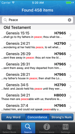 Strong's Concordance, is a concordance of the King James Bible (KJV) that was constructed under the direction of Dr. James Strong (1822–1894) and first published in 1890.A concordance lets the reader directly compare how the same word may be used else where in the Bible. In this way the Strong's Concordance provides an independent check against translations, and offers an opportunity for greater, and more technically accurate understanding of the Bible text.Want to see it in action before you buy? Try Strong's Concordance Lite which provides a 100% functional demo of Matthew and Genesis.This program does not require internet access, everything you need is all stored on the iDevice.Features:* Search for English words, and lookup Greek/Hebrew dictionaries.* Proper concordance, listing how the word was translated in other bible verses.* Full King James Text is included* Click on any blue word for concordance text.* Night mode for those that like to read at night (White on blac