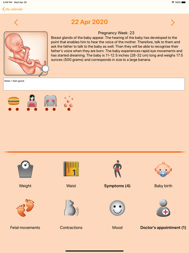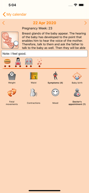 WomanLog Pregnancy는 여성용 임신 캘린더입니다.사용자 인터페이스 언어:English, Deutsch, Français, Italiano, Español, Português, Dansk, Latviešu, Magyar, Nederlands, Polski, Svenska, Čeština, Русский, 日本語, 简体中文, 繁體中文, 한국어핵심 기능: 임신 기간 캘린더주별 임신 정보체중 추적허리부분 추적백업패스워드 보호다수의 달력 관리징후들스킨 (3)Apple Health App support: Allows to read/write WeightWomanLog Pregnancy Pro:아기 이름포토 갤러리의사와의 진료약속자궁수축태아 움직임기분Pregnancy report: PDF 파일을 이메일로 전송하십시오.스킨 (10)광고 없음모든 주요 기능들은 달력을 통해서 이용할 수 있습니다. 손가락을 달력 날짜에 대고 가볍게 두드려서 각 날짜에 대한 설정을 추가 및 편집할 수 있습니다.전화기를 수평으로 돌리면 화면이 요약화면으로 전환됩니다.어플리케이션 개발자들은 이 어플리케이션과 관련하여 발생하였거나 발생할 수 있는 직간접적인 손실에 대해 책임을 지지 않습니다.임신기간의 예측은 실제 임신기간과 차이가 생길 수 있는 이론적 예측입니다. 임신 모델에 대한 설명은 일반적이고 이론적이어서 특정한 임신의 경우, 실질적 발달 단계와 맞지 않을 수 있습니다.전화기 모델 등과 같은 일반적인 기술적 데이터는 테스트 및 통계 목적으로만 www.womanlog.com 으로 전송됩니다.연락처: pregnancy@womanlog.comwww.womanlog.com © 2019