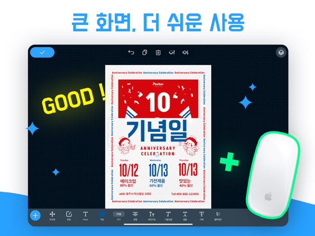 완벽한 무료 포스터 메이커 및 사진 편집기!포스터 메이커는 완전 무료 포스터 템플릿, 그래픽 편집기 및 온라인 이미지 편집 도구입니다. 그래픽 편집기를 사용하여 포스터, 전단지, 배너, 초대장, 인스타그램 스토리, 로고 디자인, 롤업, 인사말 카드, 알림, 메뉴, 명함을 만드세요. , 모집, 생일 카드, 청첩장. 좋아하는 디자인을 선택하여 포스터/전단 및 장면 사진 템플릿을 만드세요! 현재 체육관, 요가실, 세탁실, 주택 임대 및 판매, 미용, 매니큐어, 미용, 프로모션 등 다양한 산업 시나리오를 다루었습니다. 템플릿을 사용하여 포스터를 디자인한 다음 인쇄하거나 온라인으로 보내세요!이 포스터 메이커를 사용하면 다음을 디자인할 수 있습니다.• 모든 이미지 템플릿 무료 사용(포스터, 전단지, 배너, 초대장, 인스타그램 스토리, 로고 디자인, 롤업, 인사말 카드, 알림, 메뉴, 명함, 채용, 생일 카드, 청첩장 포함)• 무료 사진 편집 및 제작 도구• 무료 온라인/인쇄 가능한 생일, 청첩장, 축하 카드• 크리스마스, 추수감사절, 신년, 발렌타인데이 및 기타 공휴일 홍보 이미지 무료 제작• 디자인 PSD 소스 파일 무료 공유• 모바일 앨범 사진/사진을 무료로 편집하세요• 저작권 정보를 보호하기 위해 무료로 이미지 워터마크를 추가하세요.• 무료로 모자이크 추가• 이미지 형식과 크기를 무료로 수정하세요.• 연중무휴 무료 템플릿 업데이트 푸시온라인 포스터 메이커에는 더 많은 옵션이 여러분을 기다리고 있습니다!• 완벽한 배경제거 기능• 완벽한 사진 삭제 기능• 완벽한 사진 복구 기능• 휴대폰에서 가장 큰 크기의 이미지(2m x 2m)를 내보내면 효과가 고화질로 유지됩니다!요즘에는 사람들의 관심을 끄는 것이 어렵고 도구는 매우 비쌉니다! 그리고 귀하의 비즈니스가 아직 수익을 창출하지 못했지만 소프트웨어 비용을 미리 지불해야 하는 경우 이는 좋은 결과가 아니라고 생각합니다. 가져와! 온라인 포스터/전단 메이커를 무료로 사용하여 어떤 이벤트에도 어울리는 완벽한 이미지를 만들고 군