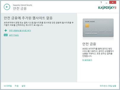 키로거는 사용자가 키보드를 통해 입력한 신용카드 번호나 다른 귀중한 정보를 가로챌 수 있으므로 Kaspersky Internet Security 2015에는 새로운 키보드 보안 기술이 포함되어 있습니다