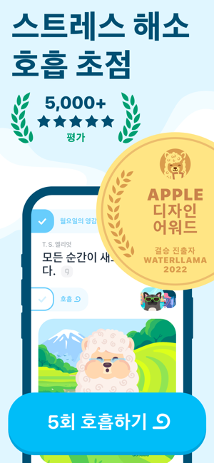 들숨... 날숨...홈 스크린에 바로 표시되는 5회 호흡마음챙김 히어로가 되세요! 목표 선택:• 차분하게 휴식 취하기• 잠들기 전에 긴장 풀기• 스트레스 줄이기• 한 가지에 집중하기• 미루는 습관 바꾸기단 60초의 호흡으로 얻을 수 있는 장점:+ 스트레스 해소+ 수면 개선+ 생산성 향상+ 기분 전환+ 휴식+ 집중력, 주의력, 기억력 향상+ 하루 동안 더 많은 에너지 발휘+ 긴장 해소+ 불안 해소+ 현재에 집중+ 더욱 강한 면역 체계+ 낮아진 혈압몰입형 음악을 들으며 긴장을 풀고 더욱 빨리 잠들 수 있습니다• 20+ 부드러운 맞춤형 멜로디• 낮과 밤을 위해 마련된 실제 장소• 세션에 선택할 수 있는 다양한 위치의 아름다운 예술: 바다, 산, 대나무 숲...재미있는 캐릭터로 스트레스 해소• 목표를 완료하면 매일 새로운 재미있는 캐릭터를 모으세요영감을 불어넣는 100가지 이상의 인용 문구• 하루종일 동기를 부여하는 많은 인용 문구를 선택했습니다호흡 위젯이 가장 효과적인 시나리오:• 온라인에서 누군가와 말다툼을 할 때• 중요한 미팅이나 시험 전에• 불안감이나 스트레스를 느낄 때• 초점 전환 필요• 미루는 경우• 잠들기 전에 긴장을 풀 때• 잠에서 깰 때• 소셜 앱 탐색을 멈춰야 할 때• 그냥 휴대폰으로 스와이프할 때Mindllama는 월간 또는 연간 구독이나 1회성 결제를 통해 이용할 수 있습니다. 무료 체험 기간 이후 혹은 결제 확인 시 iTunes 계정에 요금이 부과됩니다. 구독은 결제 기간 종료일보다 최소 24시간 전에 자동 갱신을 해제하지 않으면 구독이 자동으로 갱신됩니다. iTunes 계정 설정으로 이동하여 구독을 관리하고 자동 갱신을 해제하실 수 있습니다.침착성 및 행복 유지!이용 약관 & 개인정보 처리방침https://waterllama.com/mindllama-privacy-policy-terms-of-use.pdfHealthKit 통합은 Apple Health 앱(마음 챙기기 시간)과 데이터를 동기화하는 것입니다.