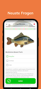 Mit einer benutzerfreundlichen Oberflche und einer Flle von Funktionen ist diese App speziell darauf ausgerichtet Ihnen bei der Prfungsvorbereitung zum Angelschein zu helfen Die App enthlt umfassende Lerninhalte Prfungsfragen Quizze praktische Tipps und vieles mehr um Ihr Wissen ber die Fischerprfung und die geltenden Vorschriften in der Schweiz zu vertiefen Sie knnen Ihr Wissen in verschiedenen Kategorien wie Fischarten Gewsserkunde Umweltschutz Gesetzgebung und Techniken testen und verbessern