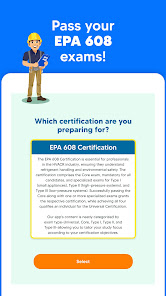Additionally our mobile app provides a personalized study plan based on your skill level study frequency and target test date Not sure when you want to take the exam You can adjust your study plan as often as you like Our proprietary readiness score will help you determine when youre ready to take the real EPA 608 certification exams Universal Core Type I Type II and Type III and pass with a high score on your first try