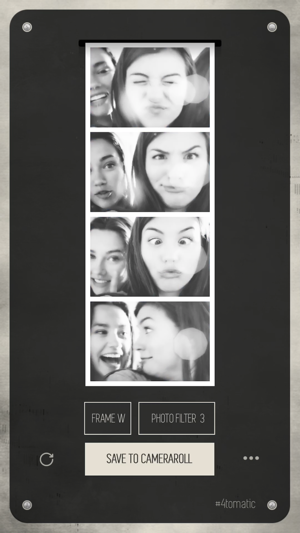 * 한시적 특별 할인중 *포토매틱은 재미있게 4컷사진을 찍을 수 있는 포토부스 카메라 앱입니다.느낌있는 셀카! 그리고 친구들과의 순간 순간을 4tomatic으로 남겨보세요!앱을 시작하고 하단의 셔터 버튼을 누르면 자동으로 4장의 사진이 찍힙니다.화면의 표시등을 잘 보고 멋진 표정을 지어보세요!4장의 사진이 다 찍힌후에는 에니메이션과 함께 사진이 출력되어 나옵니다.프레임의 색을 설정하고, 필터를 변경한 후에 저장하거나, 친구들과 공유해보세요.문의 및 제안사항은 아래의 메일로 보내주세요.4tomatic@gmail.com