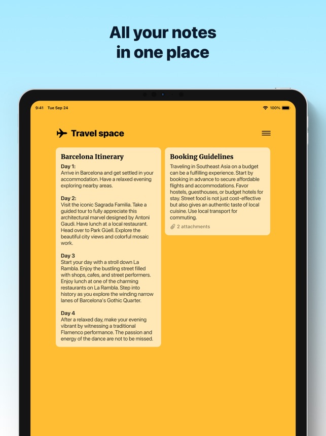 No subscriptions - Buy once, keep foreverSolid Notes is here to help you capture and organise all your ideas. You can create color coded spaces for all the things that matter in your life and you can make staying on top of your notes and thoughts easy.- Quick notesSolid Notes is designed for speed and ease of use. It's quick to take notes in any of your spaces, drag them around, archive them, format them, and more.- SpacesCreate color coded spaces for all the things that matter in your life.- Unlimited uploadsYou can upload as many images, voice recordings and sketches as you need- FormattingMake your notes as useful and clear as they can be with a variety of formatting options- Privacy firstSolid Notes is designed with privacy in mind and your data is encrypted and 100% privateAre you ready to start taking better notes? Solid Notes is a universal app available on iOS, iPadOS, and macOSYou can choose to unlock just this app or all 5 Solid Apps with one purchaseTerms of service: htt