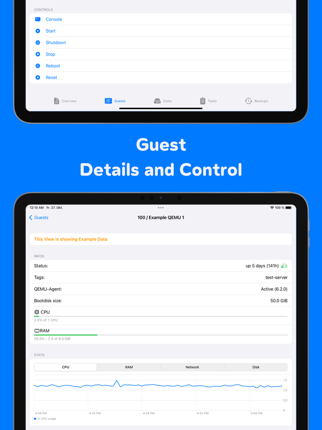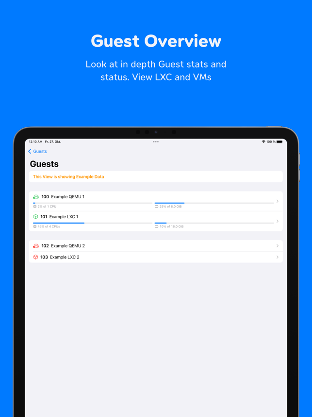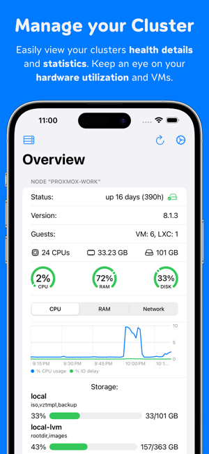With ProxMate you get a quick and easy overview of your Proxmox cluster, servers and guests.• TOTP Support• Start, stop, restart, and reset VMs/LXCs• Connect to guests through the noVNC-console• Node Terminal• Node Actions: start/stop all guests, reboot, shutdown• Monitor the utilization and details of the Proxmox cluster or server, as well as the VMs/LXCs• View disks, LVM, directories, and ZFS• List tasks and task-details• Show backup-details, start backups• Connect to Cluster/Node via reverse proxy• iCloud/Keychain SyncTerms of Use (EULA):https://www.apple.com/legal/internet-services/itunes/dev/stdeula/Privacy Policy:https://proxmate-app.de/norobots/en/website-privacy-policy.html