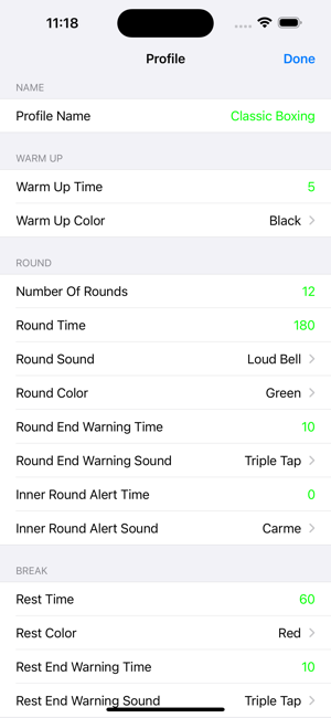 Boxing, MMA, Muay Thai, Kick Boxing, CrossFit & HIIT Round TimerBoxing Interval Timer is a round timer designed for training in any round sport such as Boxing Martial Arts, Wrestling, Mixed Martial Arts (MMA), Muay Thai, Kick Boxing, BJJ, or for any other round timer needs. It’s simple, modern and effective and works well also for HIIT trainings like TABATA, CrossFit.FEATURES:* Fully configurable sounds & times* Set times & sounds for preparation, round, warning, and rest* Inner round alerts* Color indication of phase* Blinking to alert warning* Screen stays on automatically* Works with screen on, or off * Multiple profiles to select* Create custom profile for different sports* Can be used for TABATA, CrossFit and other HIIT exercises* Easy to useUse the timer for when exercising in the gym, running, doing bodyweight exercises, sprints, high-low intensity cycling, boxing, MMA or other martial arts. Even though it says Boxing Interval Timer, you can use it for your TABATA, H