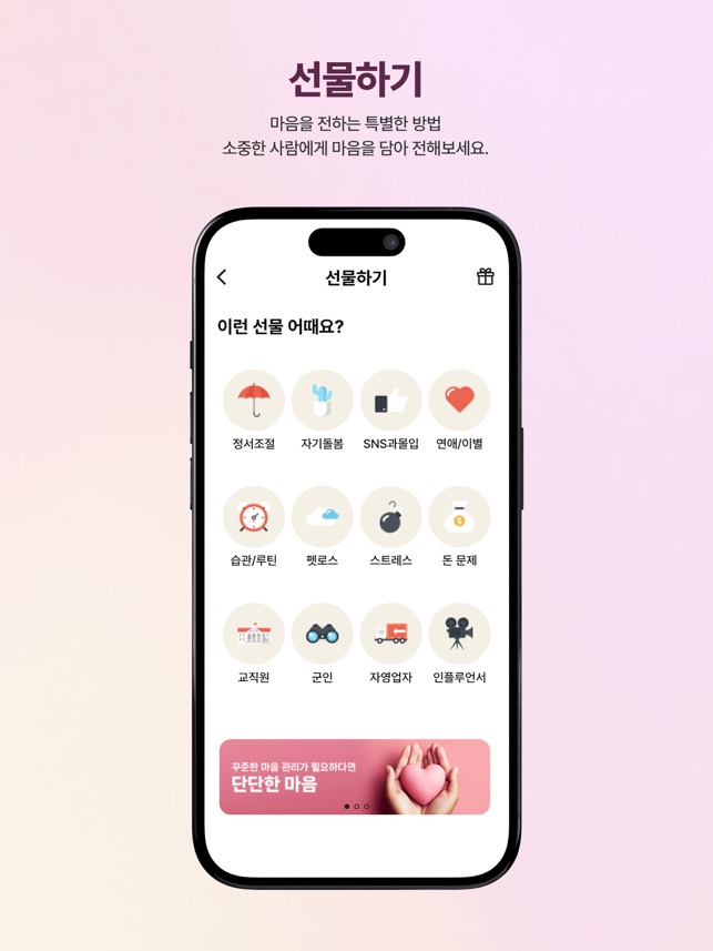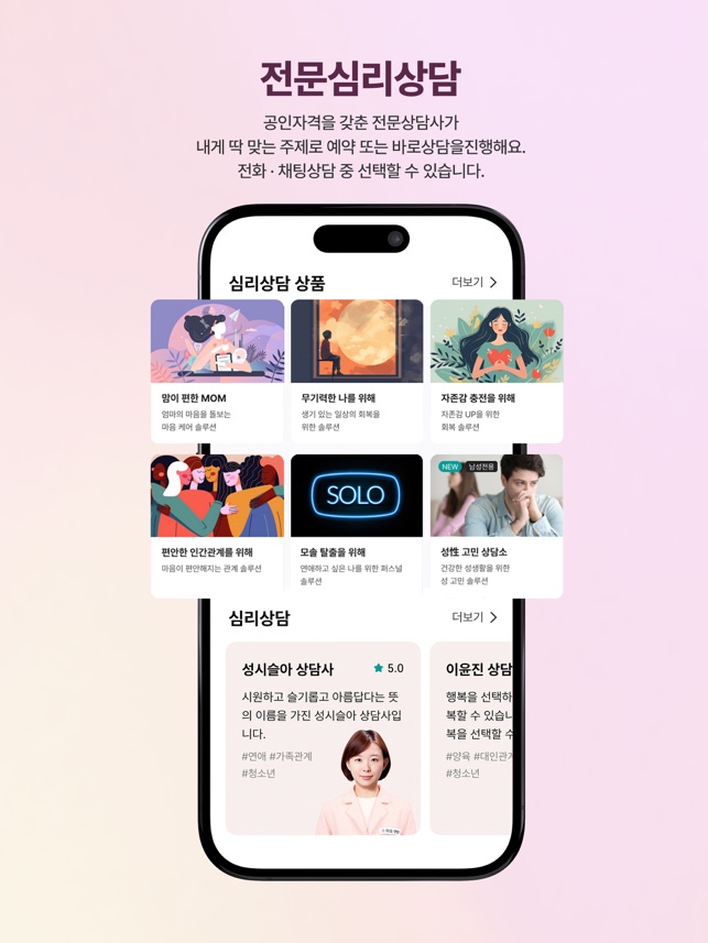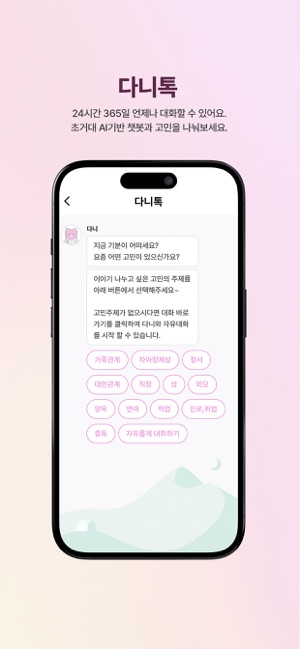마음을 터놓고 이야기 할 수 있는 곳이 필요했나요. 마음:단단이 들어줄게요. 마음:단단이 당신의 마음을 지켜줄게요."마음:단단 먼저 다가갑니다." 찾아가는 서비스,마음모니터링을 통해 회원님의 정서상태를 살펴드립니다."마음:단단은 예방합니다." 고민별 자가테스트를 통해 스스로 마음을 미리 점검하고, 마음:단단리포트에서 내 마음의 상태를 확인하여 대처할 수 있습니다."마음:단단은 지킵니다." 정기적이고 꾸준한 심리상담이 가장 효과있다는 연구결과가 있습니다. 마음:단단 구독서비스로 회원님의 마음이 단단해지도록 꾸준하게 관리해 드립니다."마음:단단은 전문적입니다." 공인된 전문심리상담사가 회원님의 마음케어를 적극적으로 도와드립니다.1. 이용안내 - 상품구매 마음:단단에서 상담권과 구독상품을 구매할 수 있습니다. - 예약 구매한 상담권을 전문가 상담을 진행하기 위해서는 상담예약이 필요합니다. 1) 상담을 원하는 전문상담사를 선택 2) 예약 가능 날짜와 시간을 확인 3) 보유 중인 상담권을 선택하여 최종 예약 완료 - 접수지 작성 접수지는 상담 시작 전에 미리 작성해 주세요. 상담 시 참고 자료로 활용됩니다. - 상담하기 상담방이 개설되면 알림이 전달되고 입장이 가능합니다. 전문상담은 1회 50분 동안 마음:단단 앱에서 진행됩니다. - 마음:쓰다 자신의 감정을 12가지 이모티콘을 사용하여 기록하고 관리하는 메뉴입니다. 마음 캘린더를 통해 한눈에 확인할 수 있습니다. - 다니톡 초거대 AI기반의 챗봇으로 누구나 고민 주제를 선택하여 심리테스트와 함께 자유로운 대화를 경험할 수 있습니다. - 다니의 숲 주 1회 정해진 주제에 대하여 텍스트와 음성으로 자유롭게 표현할 수 있습니다. - 다니의 고민 고민을 작성하면, 전문상담사에게 답변을 받을 수 있습니다. 또한 회원들과 고민글을 공유하고 공감을 표현할 수 있습니다. - 마음