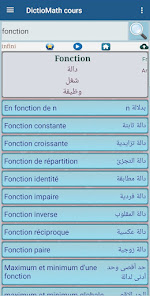L39application contient un dictionnaire vaste couvrant les termes scientifiques dans les domaines des mathmatiques de la physique des sciences de la vie et de la Terre du droit et de l39informatique Le dictionnaire se distingue par sa capacit traduire entre trois langues arabe franais et anglais