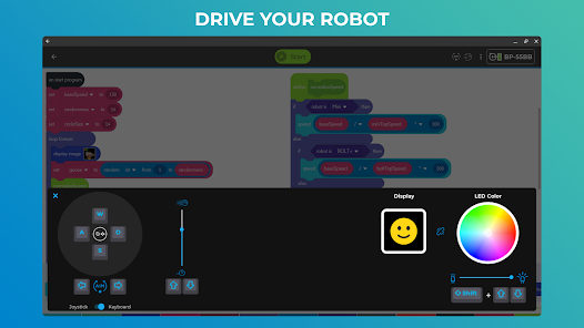 드라이브하기 두뇌 휴식이 필요합니까 로봇의 LED 색상을 설정하고 드라이브 모드에서 주변을 확대하십시오