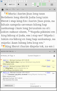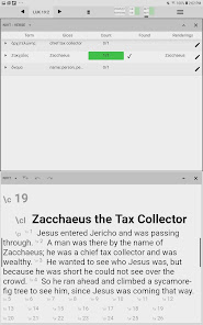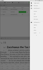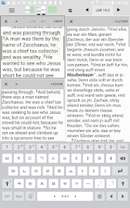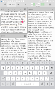 Sync scrolling By default all text panes shown on screen scroll together when you tap in a verse