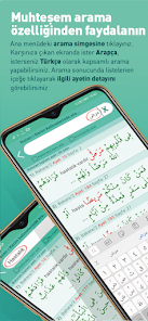 Muhteem arama zelliinden faydalann Ana mendeki arama simgesine tkladnzda ister Arapa isterseniz Trke olarak kapsaml arama yapabilirsiniz Arama sonucunda listelenen iee tklayarak ilgili ayetin detayn grebilirsiniz