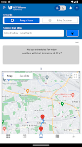 Realtime shuttle bus information including a map showing where the bus is and how many minutes away it is