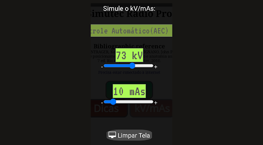 Radiologia Simulador Tcnico uma verso de teste do Simutec Radio Pro feito para Tcnicos e Tecnlogos em Radiologia estudantes e profissionais Simula kV e mAs e Exames Radiogrficos escolhendo parmetros como posicionamento angulao e incidncia do raio central tamanho do chassi e dos fatores kV e mAs Possui Dicas de todas a Incidncias possveis de simular nele timo para o aprendizado
