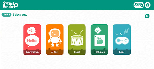 Smart English 2nd Edition AI Speaking App은 AI Andi 뿐만 아니라 오디오 애니메이션 게임 플래시카드와 같은 다양한 디지털 컨텐츠로 구성되어 있습니다 교재 캐릭터와 함께 대화를 연습해볼 수 있으며 귀여운 AI 로봇 Andi가 학습자의 발음 정확성과 유창성을 평가해줍니다