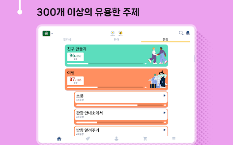 단어와 문장 그리고 초급 중급 및 고급 사용자를 위한 표현 학습을 통해 어휘력을 확장시켜보세요
